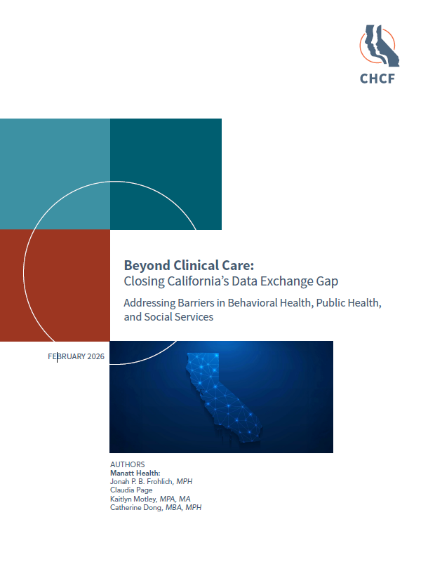 CHCF partnered with researchers at Manatt and UCSF to survey key stakeholders to understand barriers to cross-sector data exchange and identify solutions. This research can guide California’s efforts to improve information sharing across health and human services.